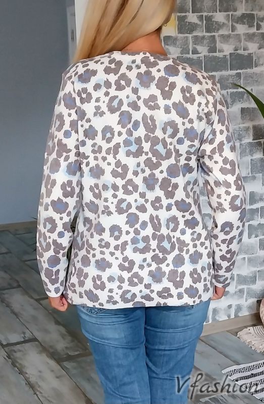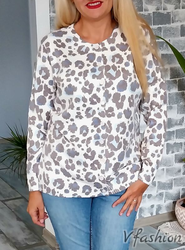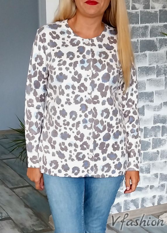 Стилна жилетка с много актуален принт и красиви копчета. Жилетката е от фино и меко плетиво.