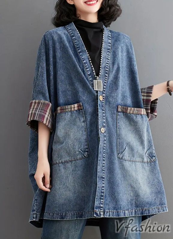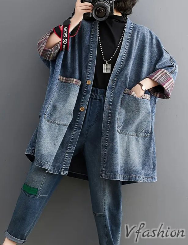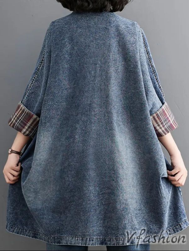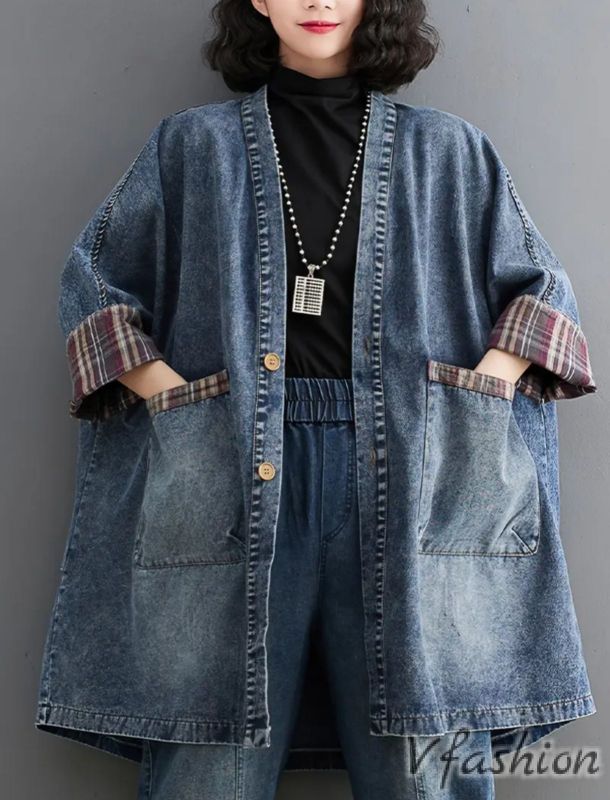 Дълго и широко, дънково яке с копчета и удобни джобове.