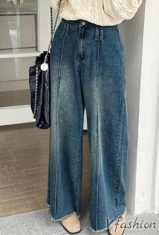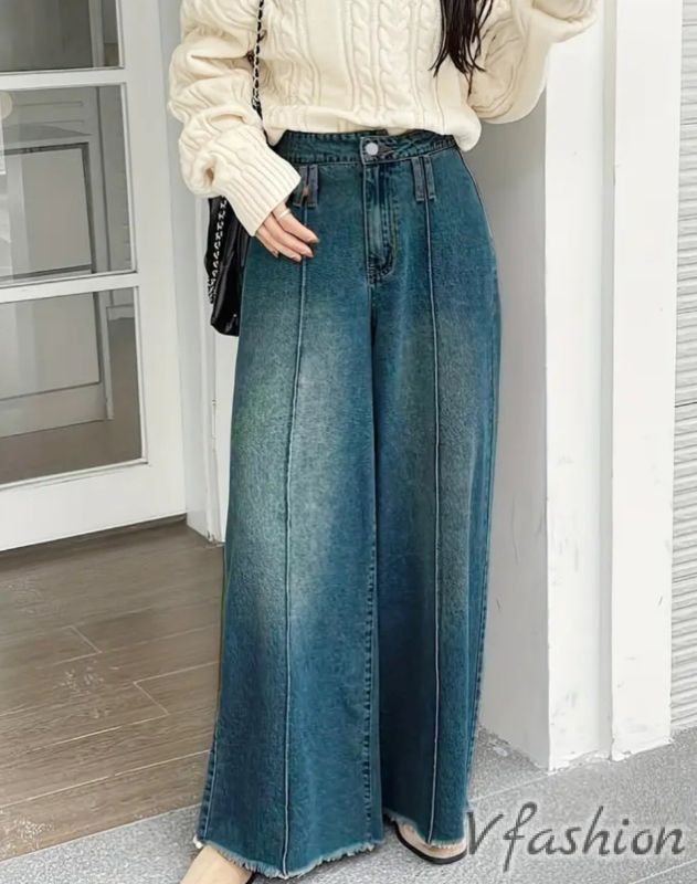 Актуални, макси дънки с ръб отпред. Материята е еластична.