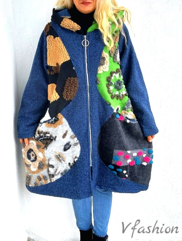 Много актуално и висококачествено палто с красиви, цветни акценти. Палтото има качулка и удобни джобове.
