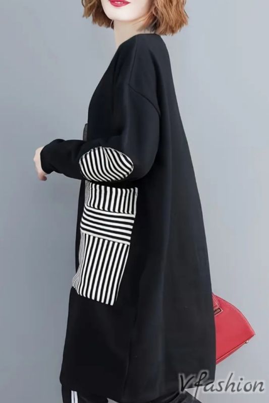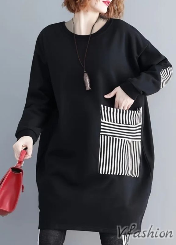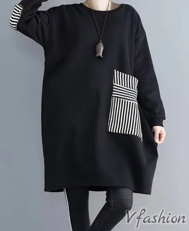 Много актуална туника/рокля с голям джоб в черно и бяло.