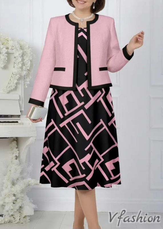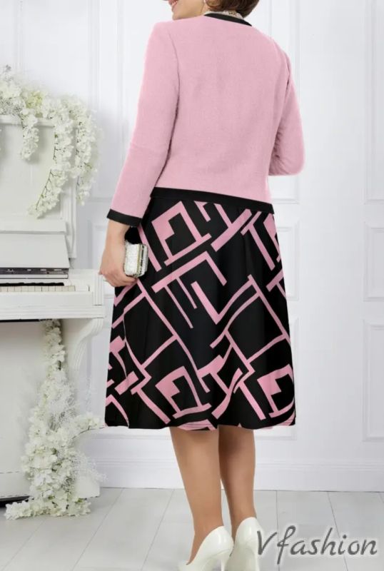 Елегантен комплект от рокля и сако в черно и розово. Материята е еластична.