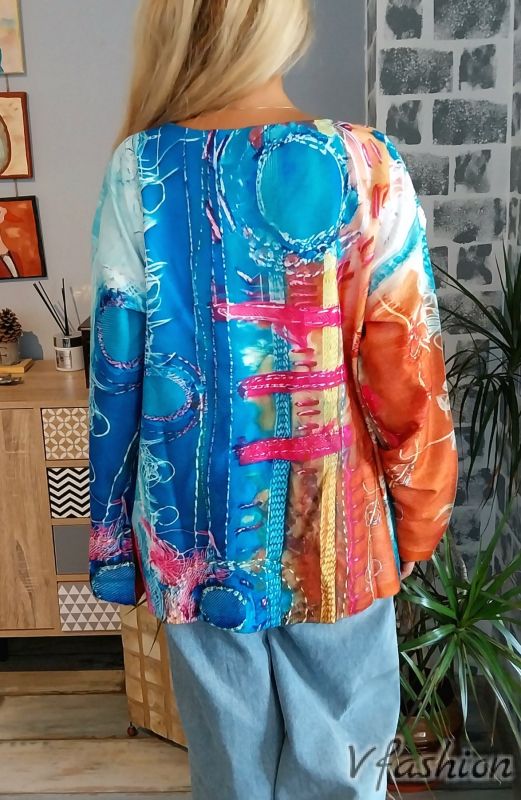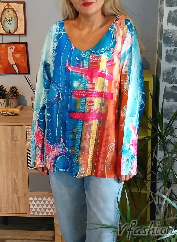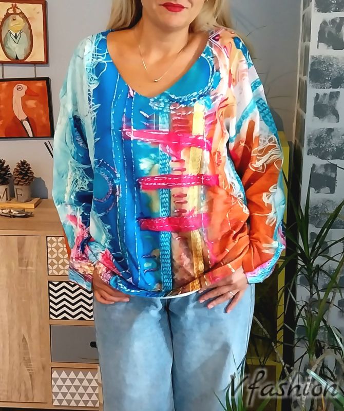 Много актуален пуловер от тънко, фино и качествено плетиво с много красив, реалистичен принт.