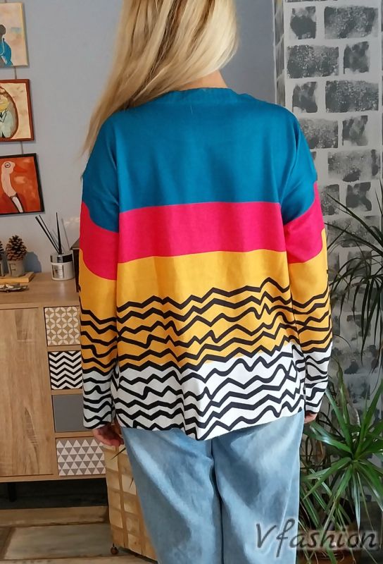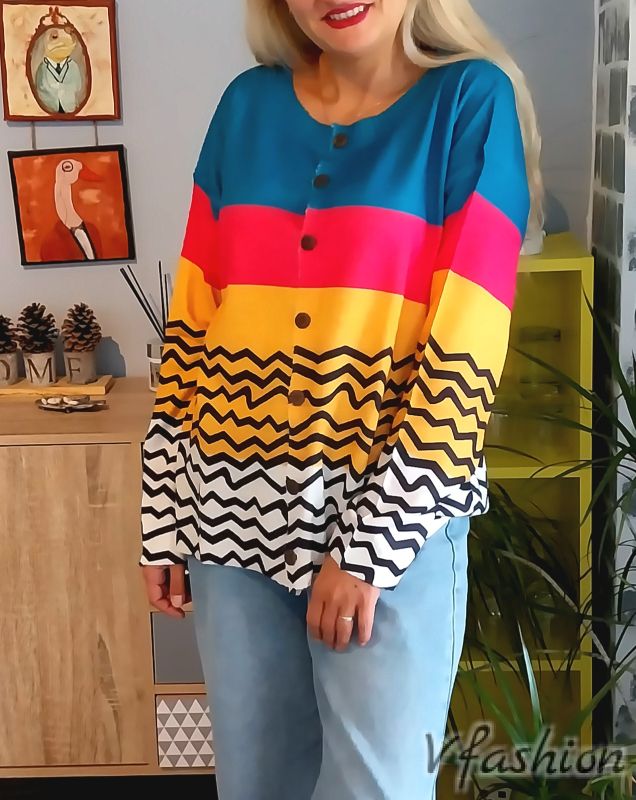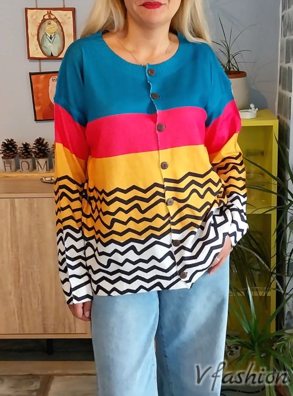 Много актуална жилетка от тънко, фино и качествено плетиво с много красив принт.