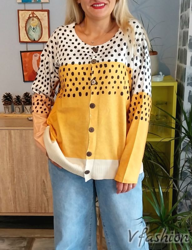 Много актуална жилетка от тънко, фино и качествено плетиво с много красив принт.