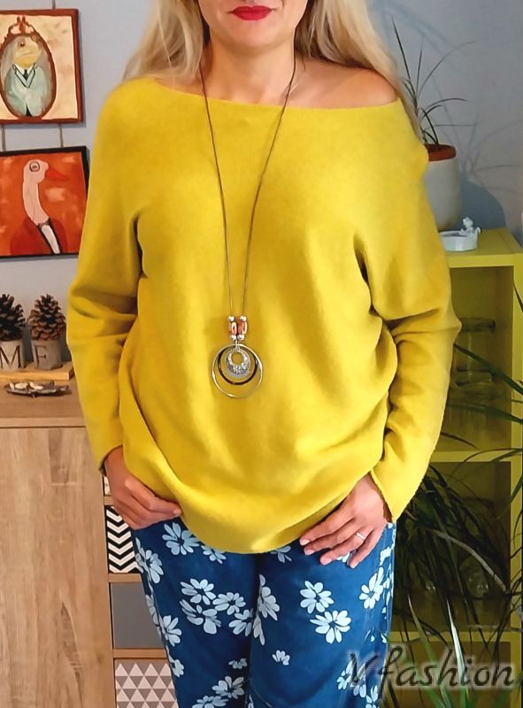 Едноцветен пуловер от много меко и качествено плетиво с подарък - гердан.