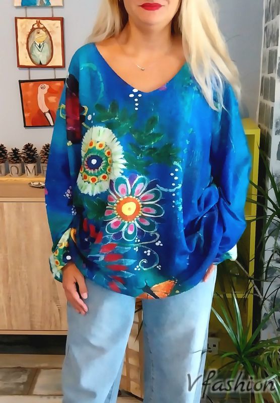 Актуален пуловер от фино и качествено плетиво с много красив принт.