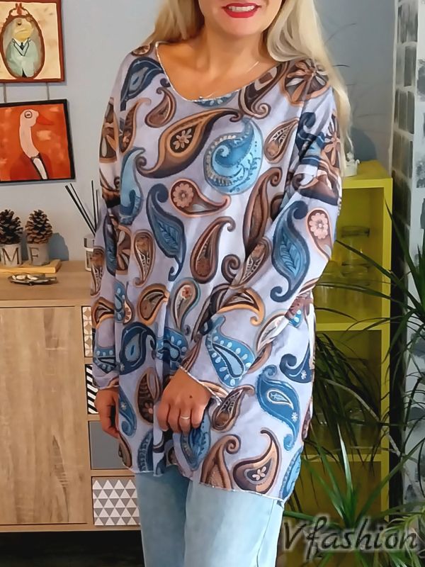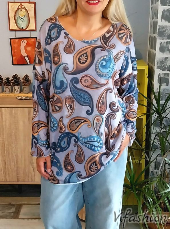 Много актуален пуловер от много меко, фино и качествено плетиво с пейсли принт.