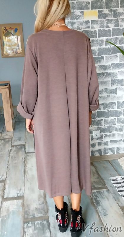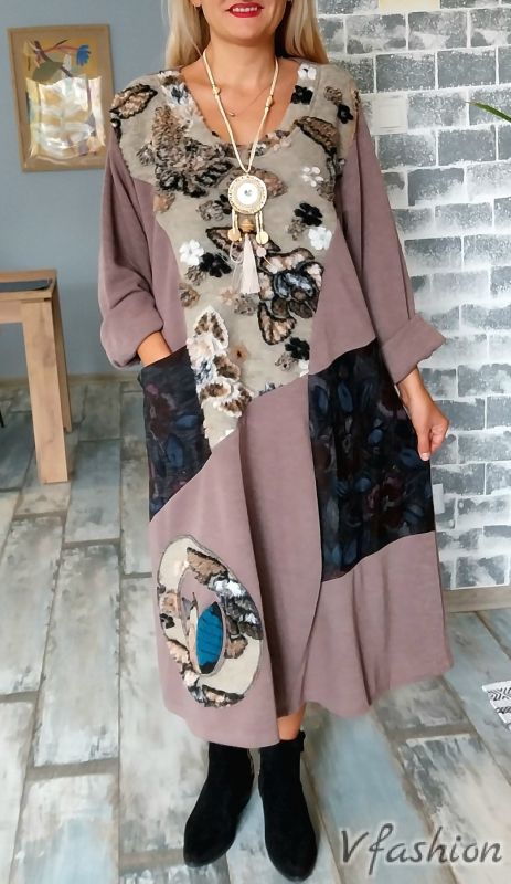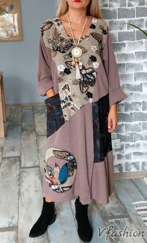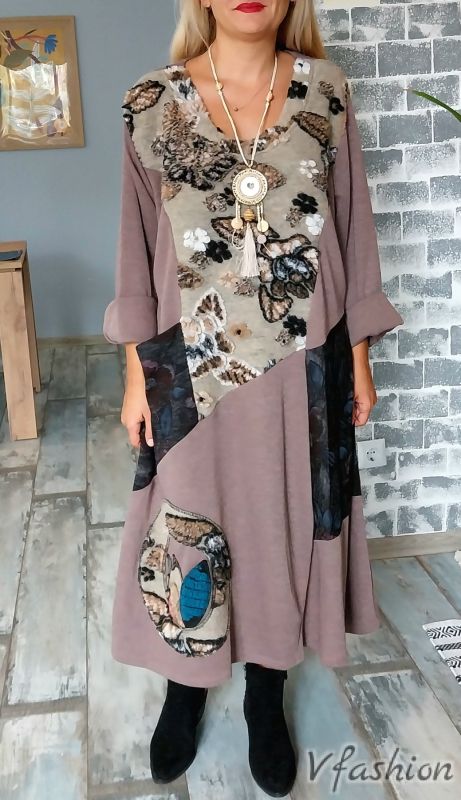 Арт рокля с много красиви, цветни акценти от вълнен плат. Роклята има удобен джоб. Материята е много качествена, плътна и леко еластична.