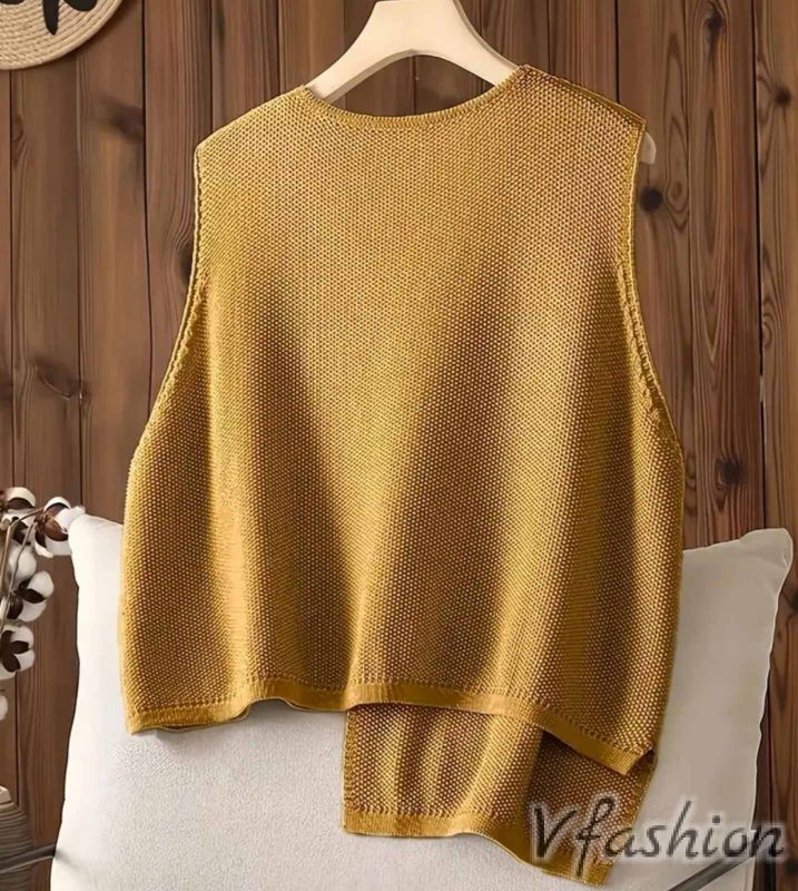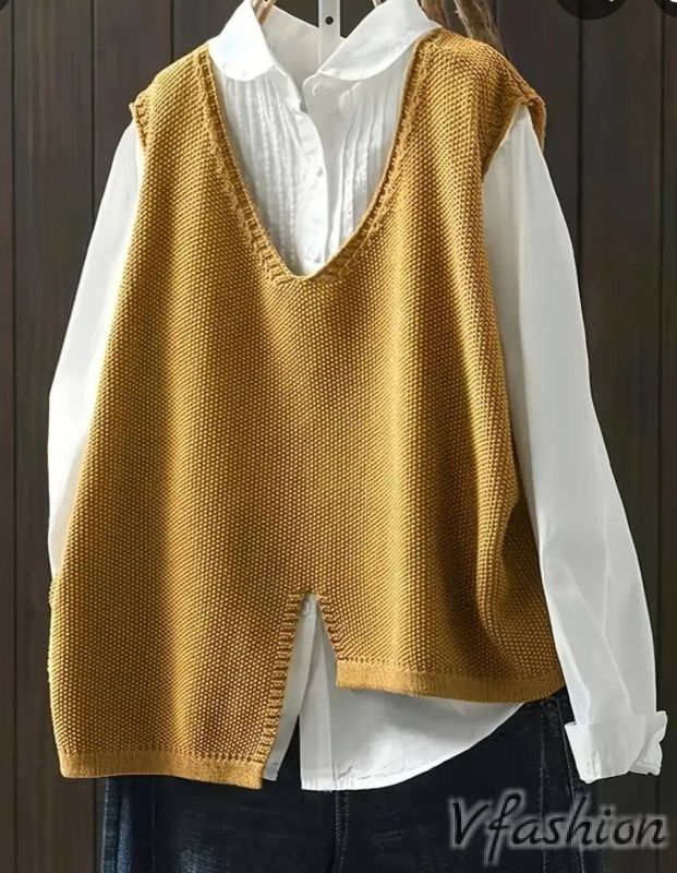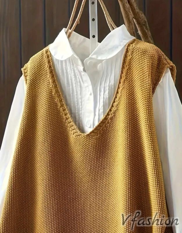 Блуза без ръкав от тънко плетиво. Може да се носи върху риза или друга блуза.