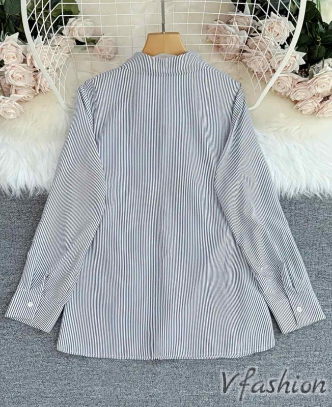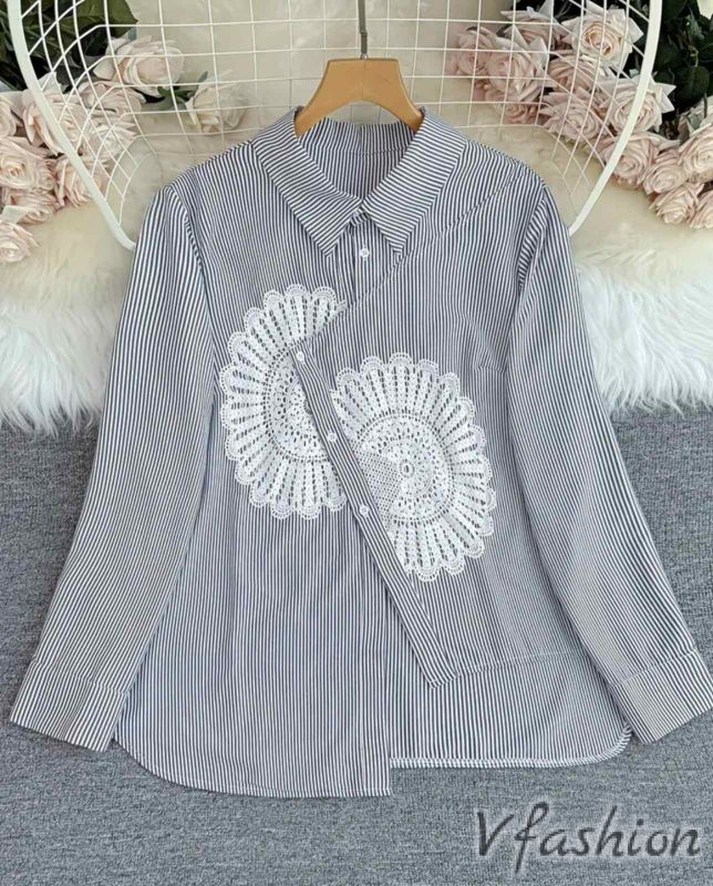 Много красива риза на райета с асиметрична дължина и красива бродерия.