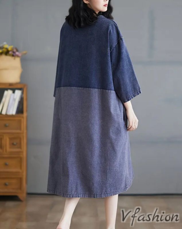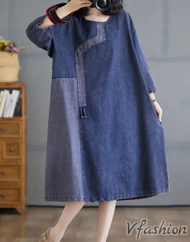 Дънкова рокля с акценти