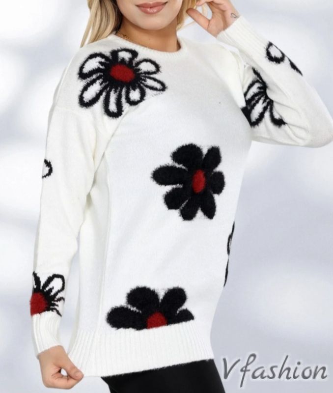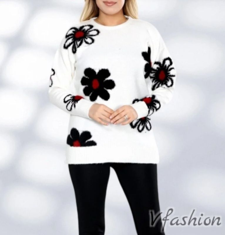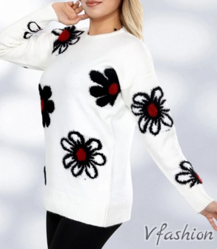 Много мек и топъл пуловер от качествено плетиво на цветя.