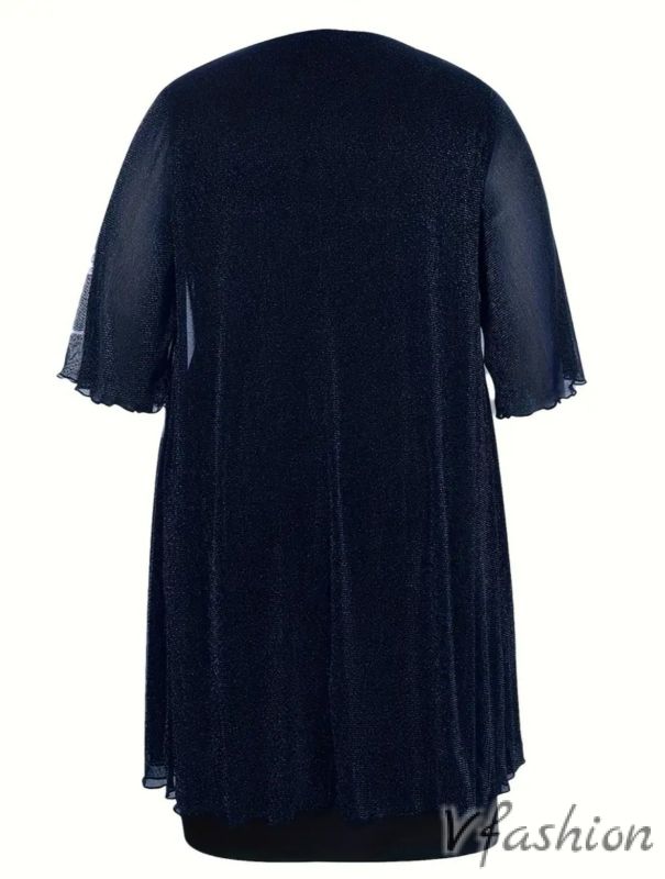 Официална рокля с пришито наметало със сребристи нишки. Материята е леко еластична.