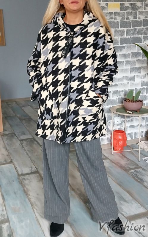 Палто с качулка и джобове