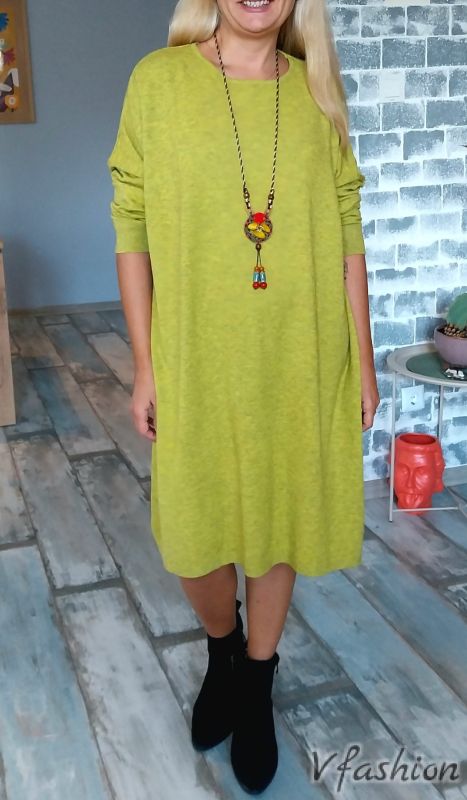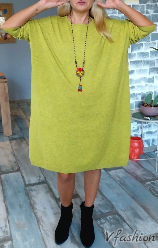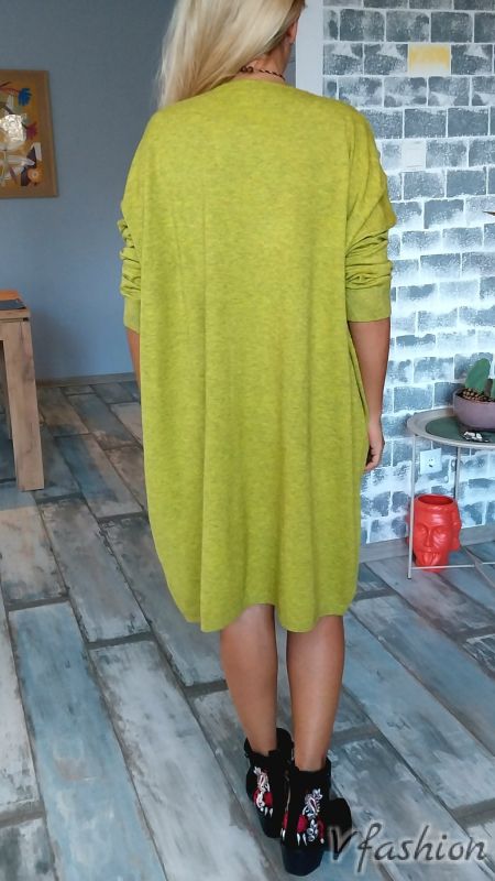 Широка рокля - фино плетиво - зелена