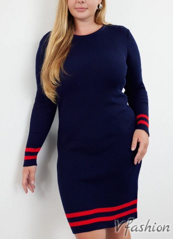 Рокля плетиво - синьо и червено