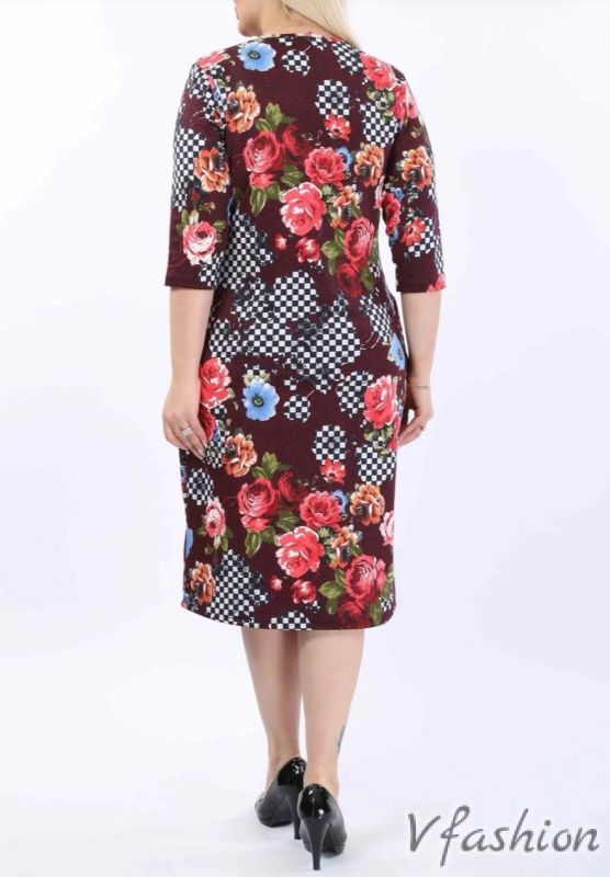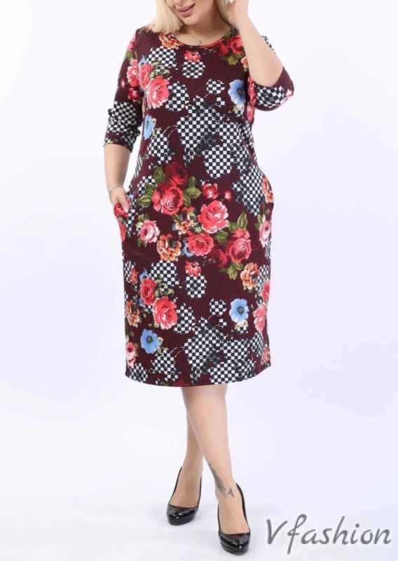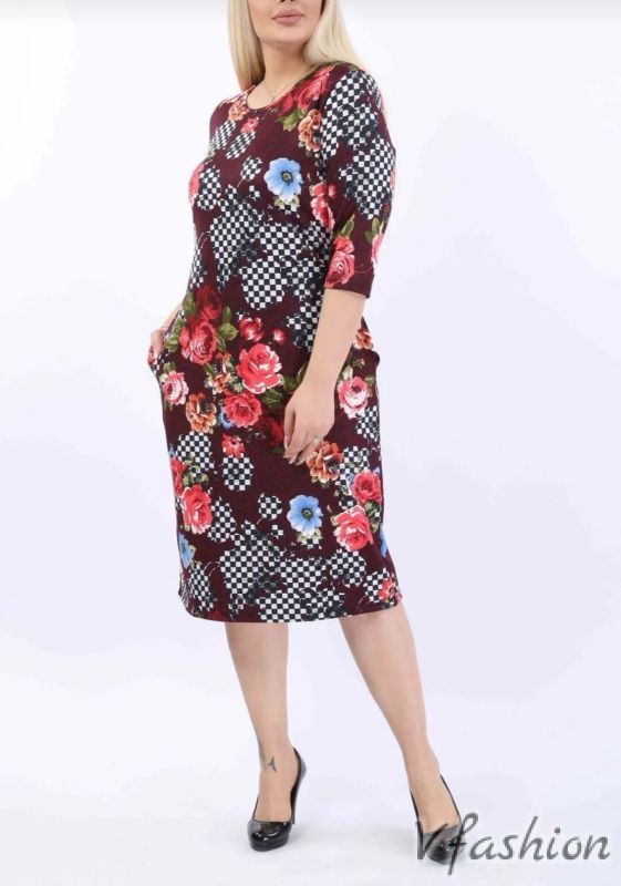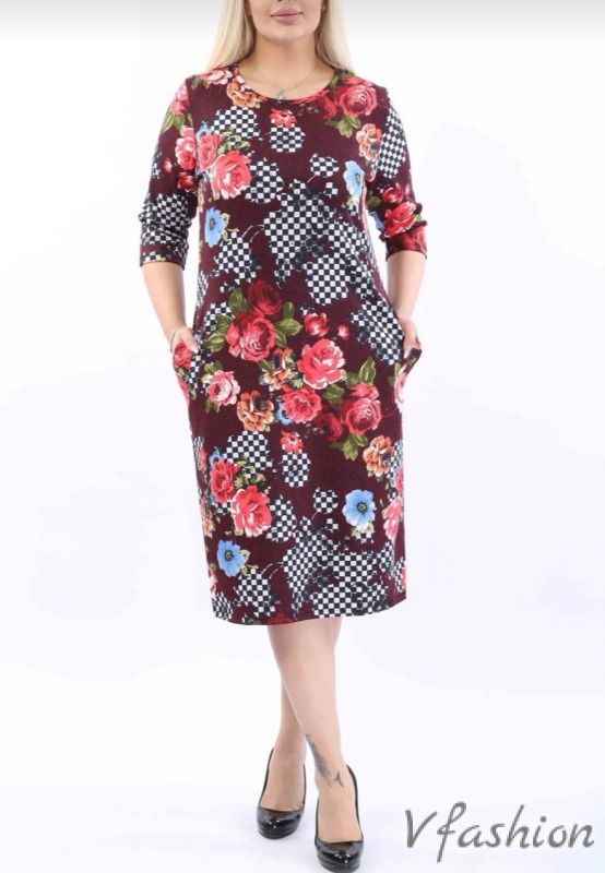 Стилна, права рокля с принт и удобни, странични джобове. Материята е леко еластична.