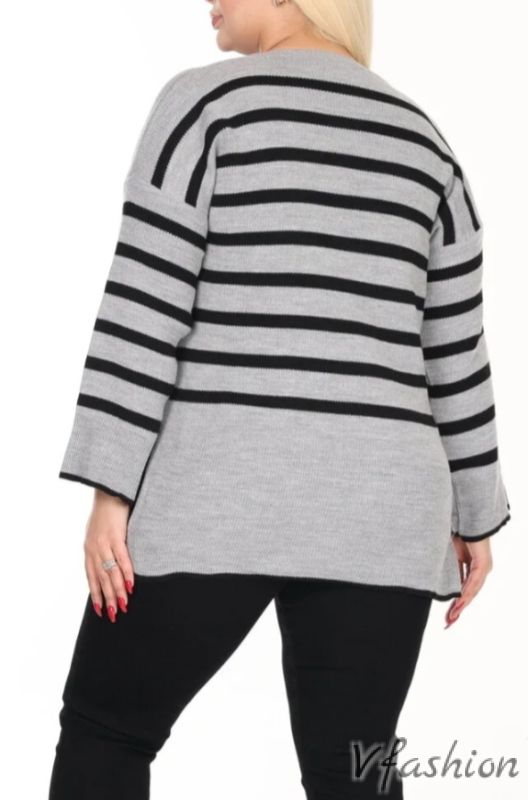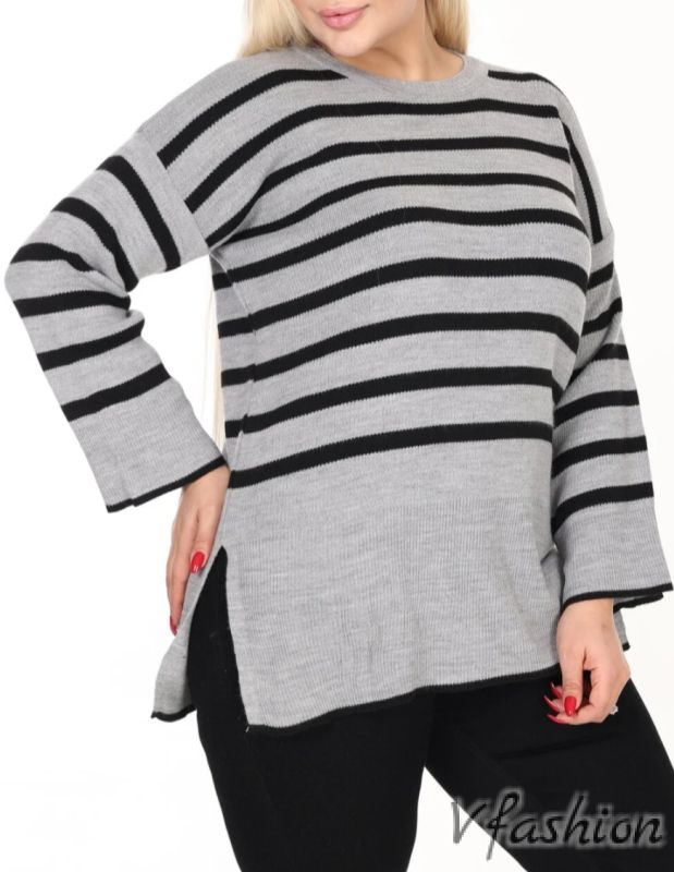 Пуловер на райета - сиво и черно