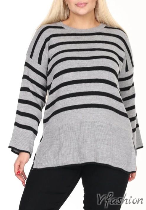 Актуален пуловер от качествено, фино плетиво на райета.