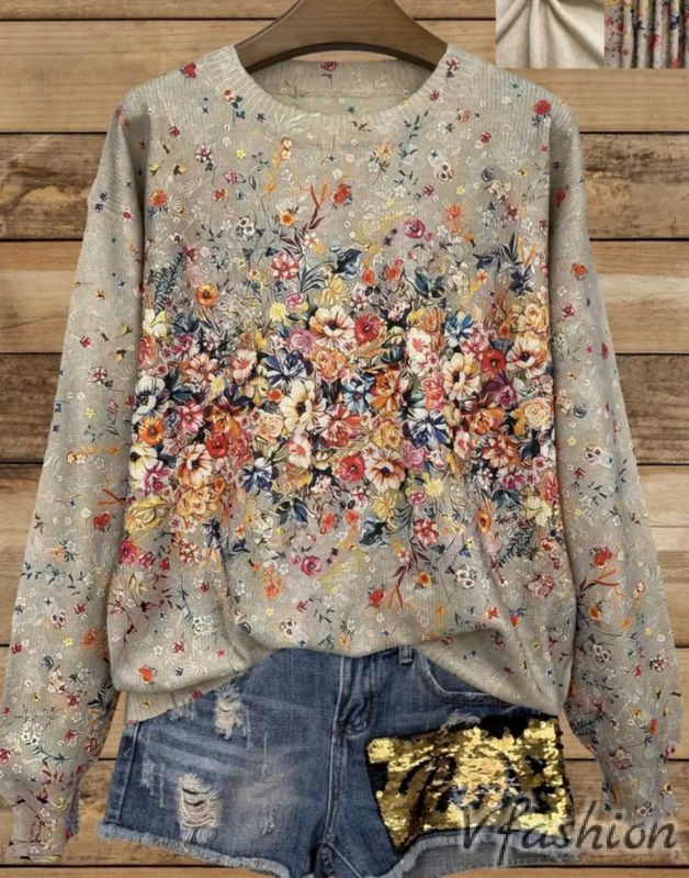 Пуловер с принт цветя