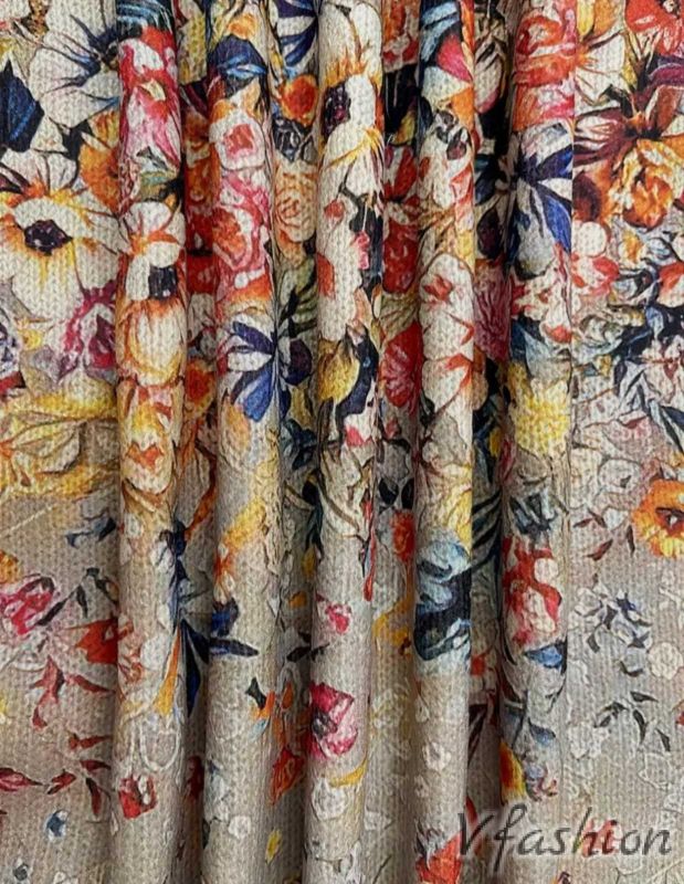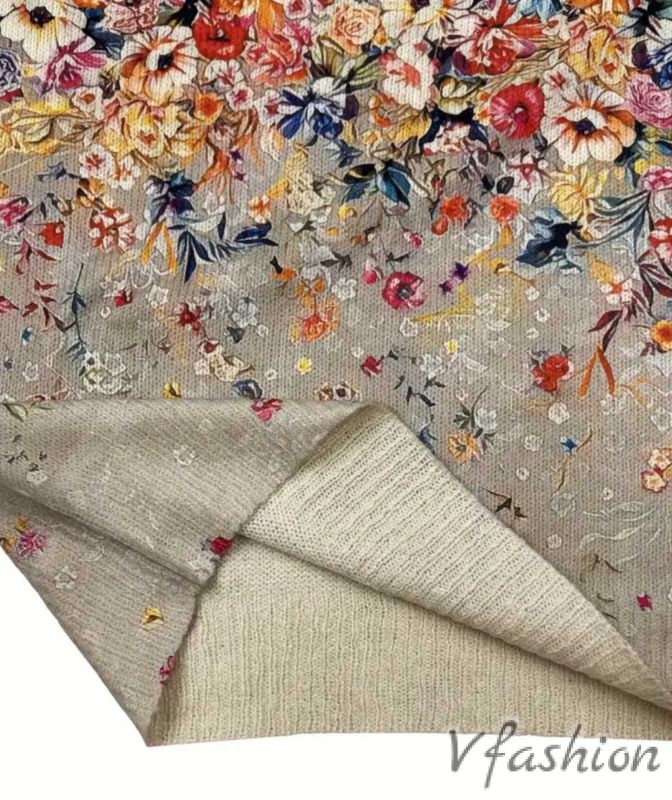 Актуален пуловер от качествено плетиво в бежово с принт красиви цветя.