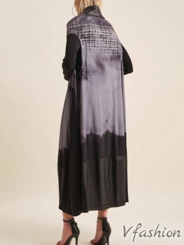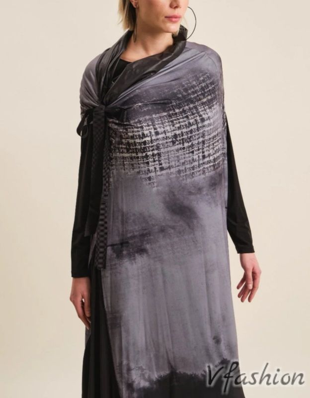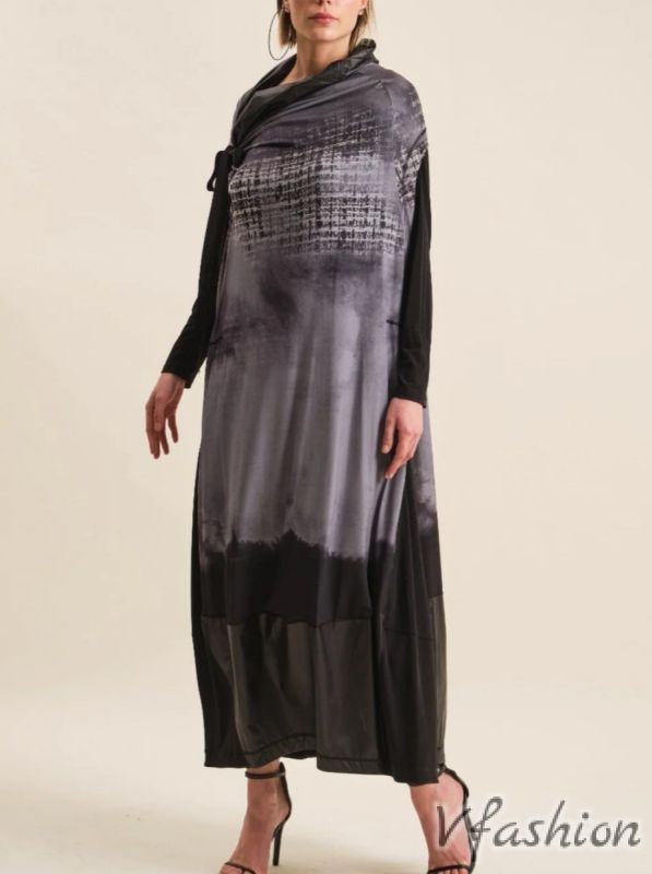 Много красива и изключително качествена рокля от две части. Материята е качествена и еластична. Долната част е с дълъг ръкав, а горната е по-широка и без ръкав.