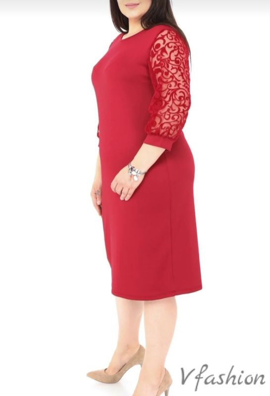 Елегантна и красива рокля с изчистен силует и дантелени ръкави.