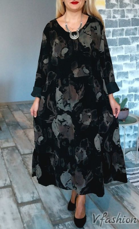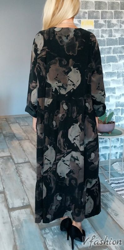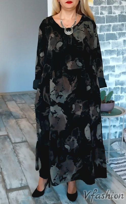 Много актуална рокля с принт арт цветя. Роклята има странични джобове.