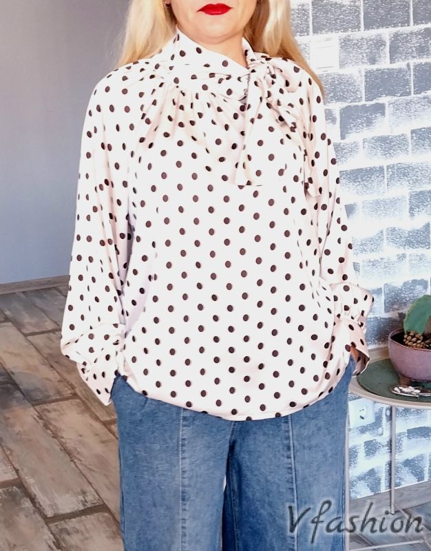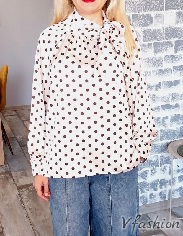 Елегантна блуза на точки - бежова