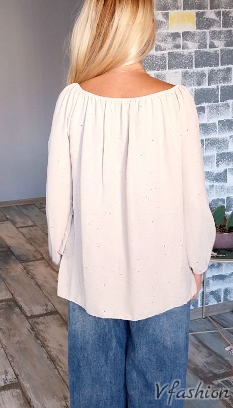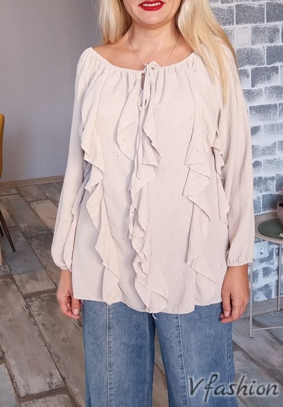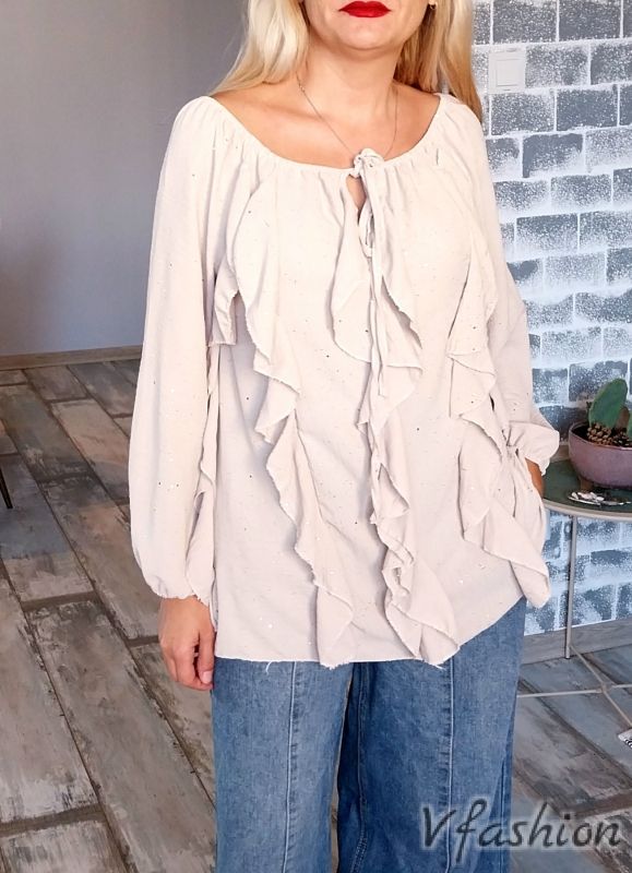 Блуза с волани - бежова