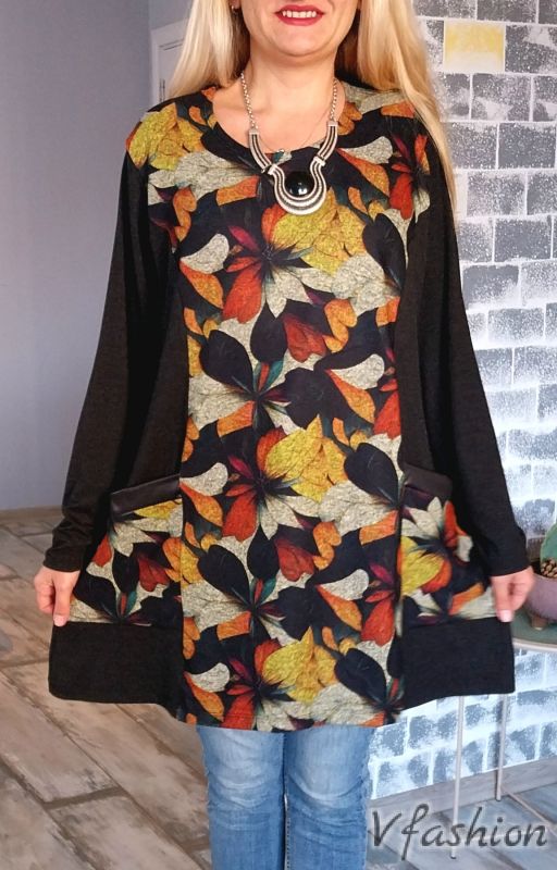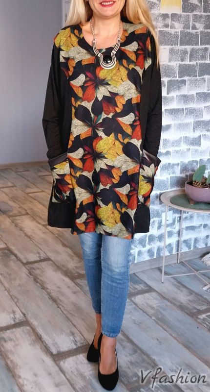 Кокетна, спортно-елегантна туника с цветен акцент и джобове. Материята е еластична.
