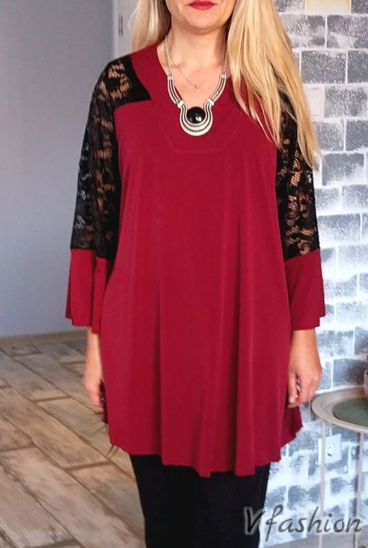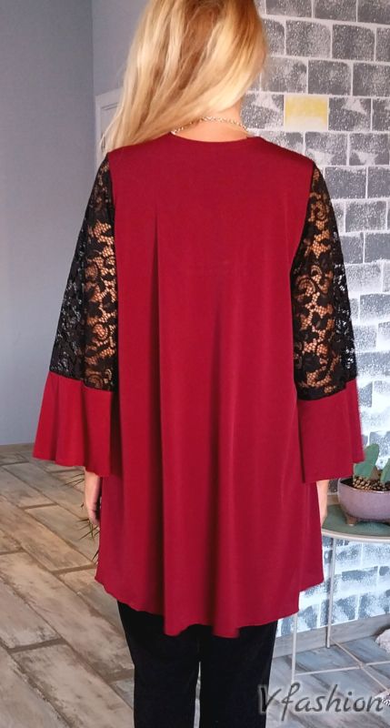 Елегантна, разкроена туника с дантела. Материята е еластична.