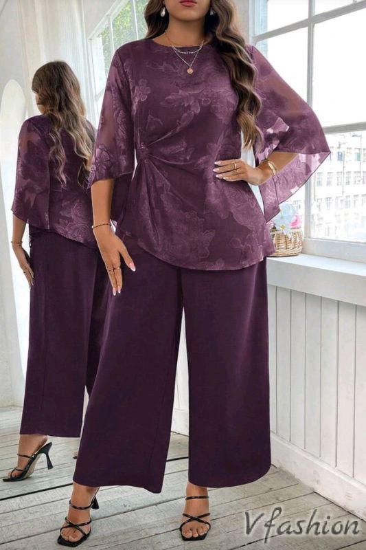 Комплект панталон и блуза на цветя - лилав