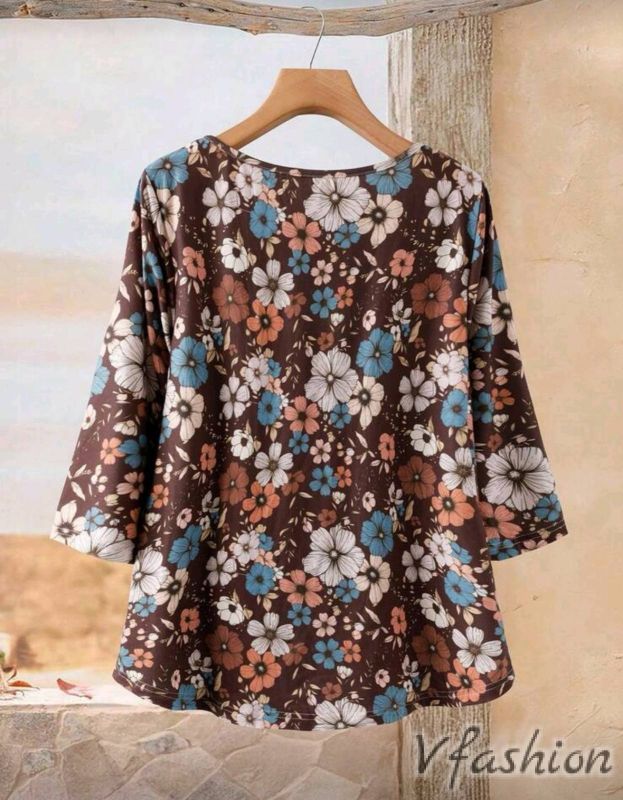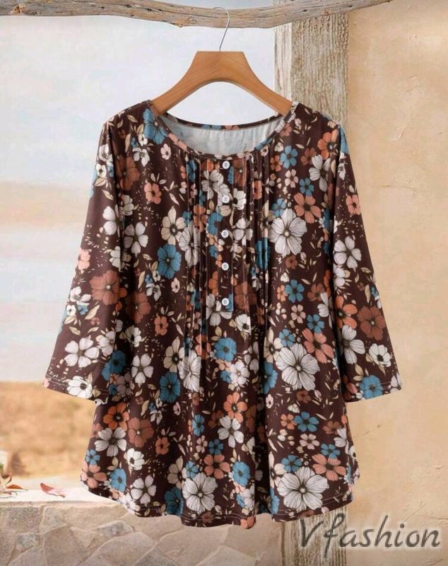Кокетна, ежедневна блуза с копчета и принт красиви цветя. Материята е еластична.