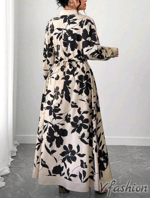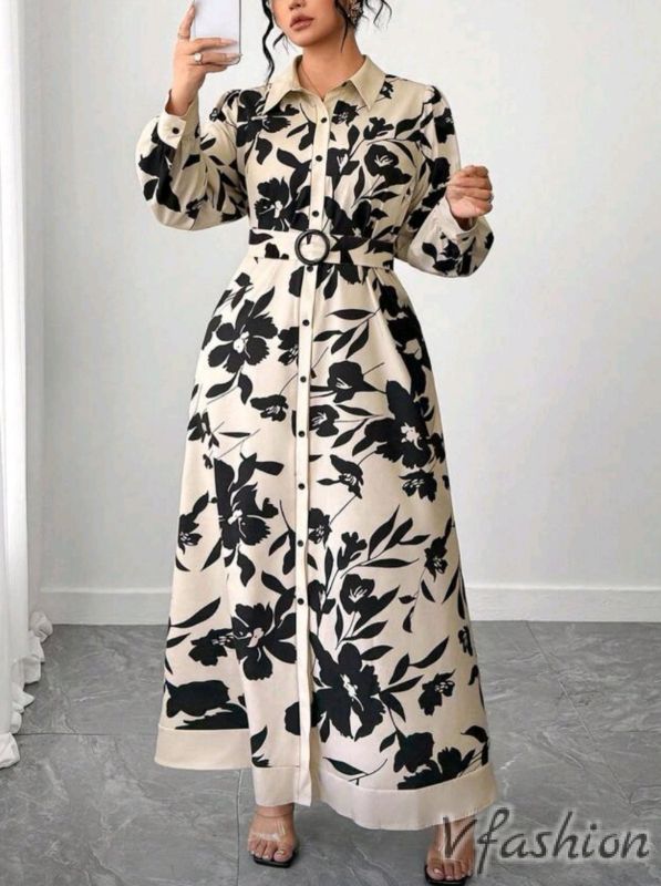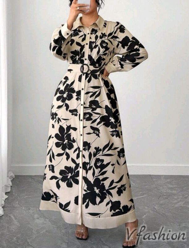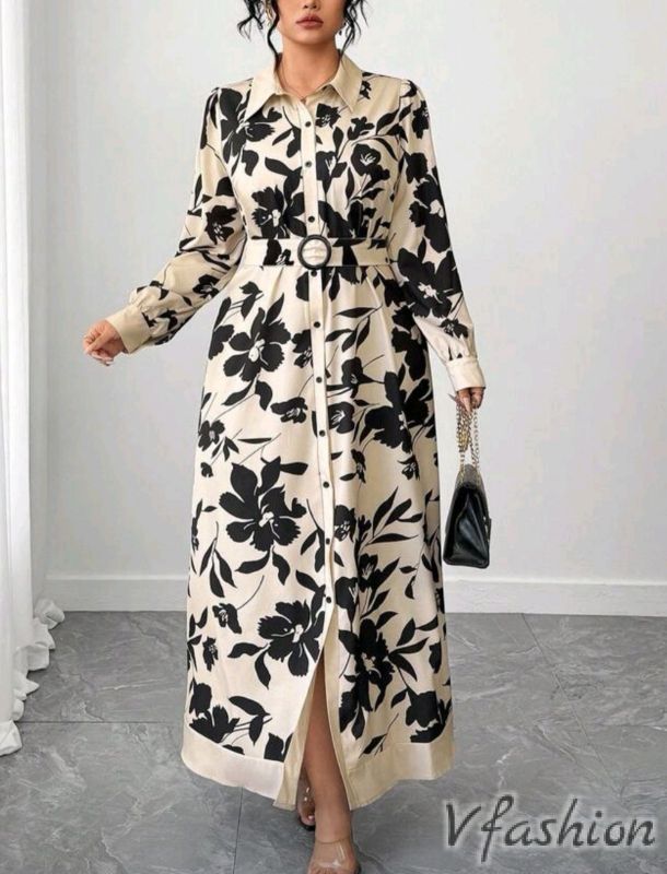 Спортно-елегантна рокля-риза с колан от същия плат.