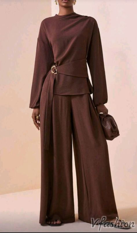 Много стилен комплект от панталон и блуза със златист акцент.