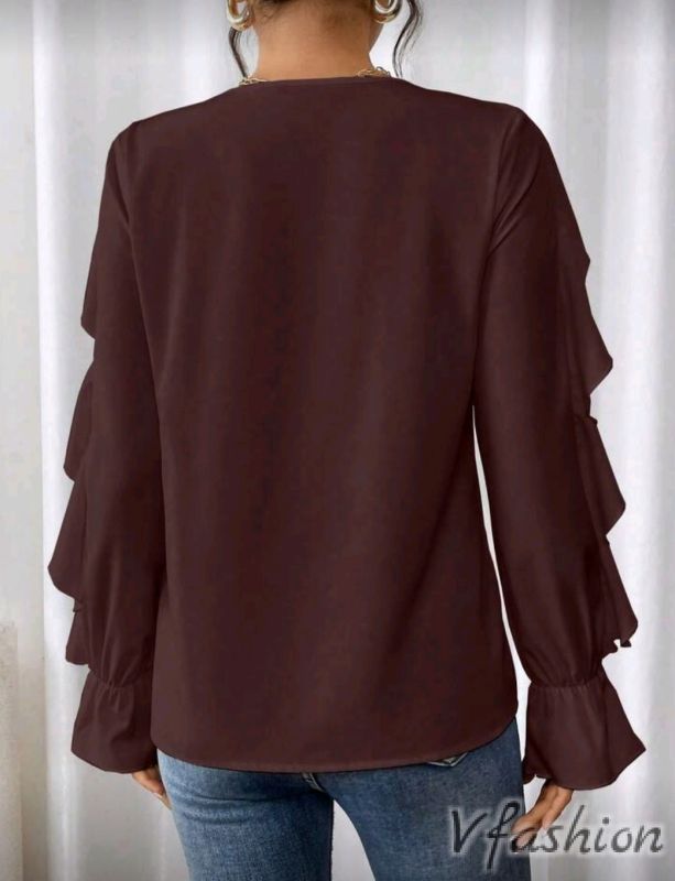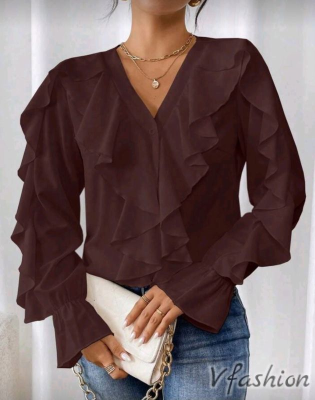 Риза с волани - кафява