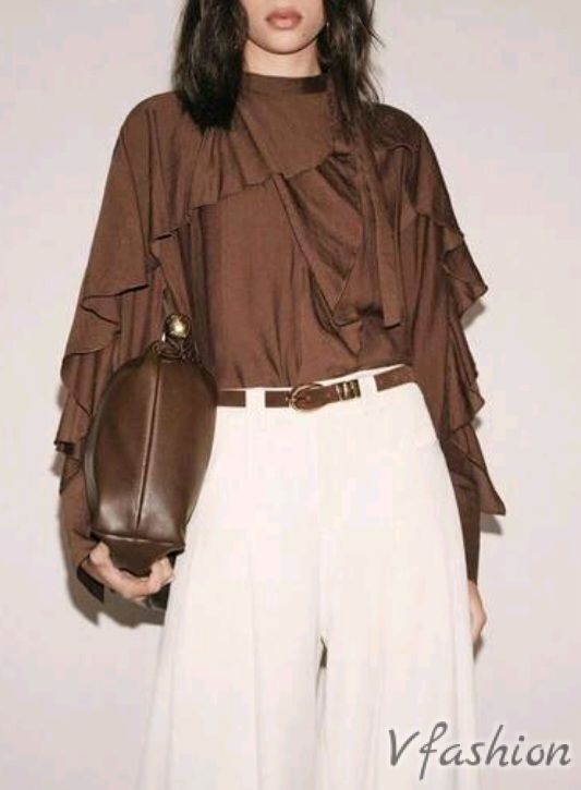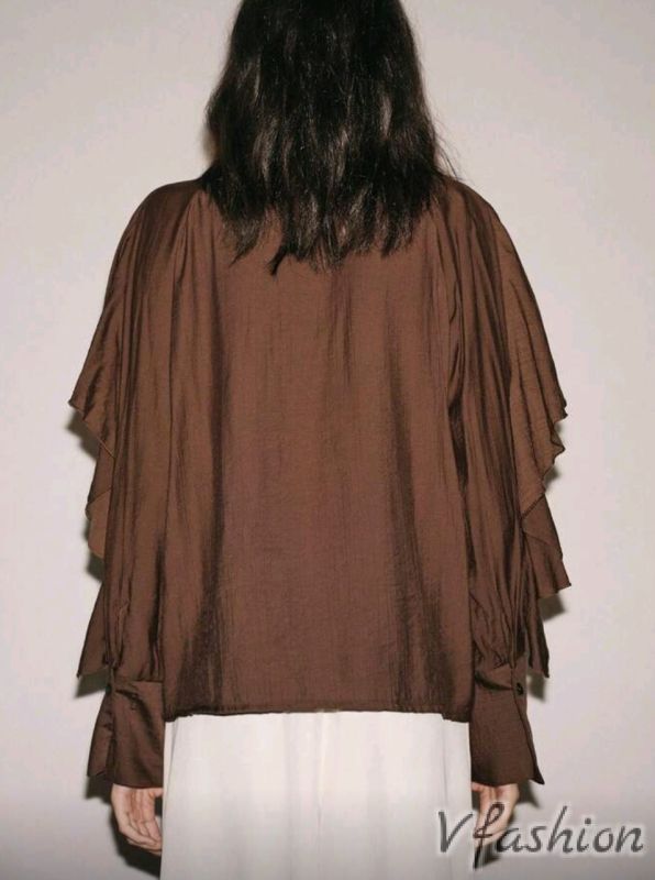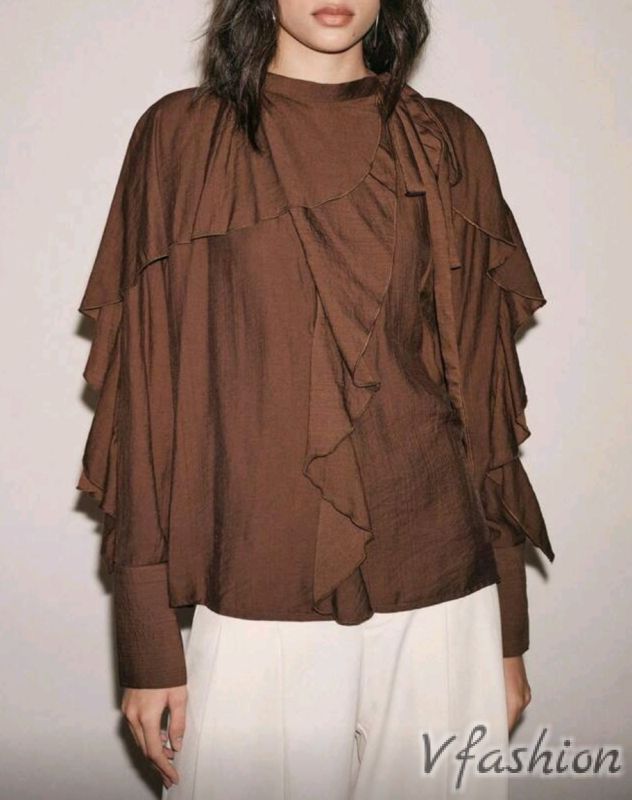 Блуза с волани - кафява