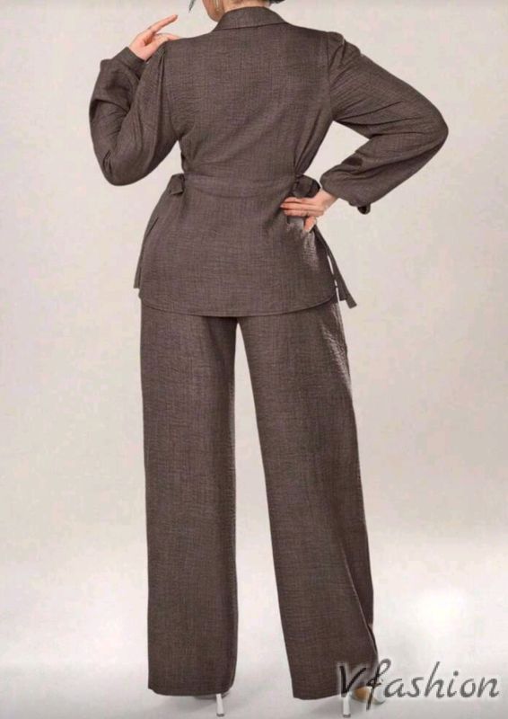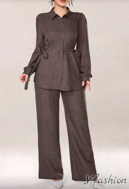 Красив, спортно-елегантен комплект от панталон и дълга риза с връзка.
