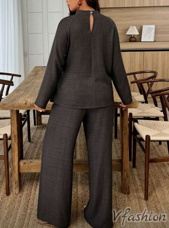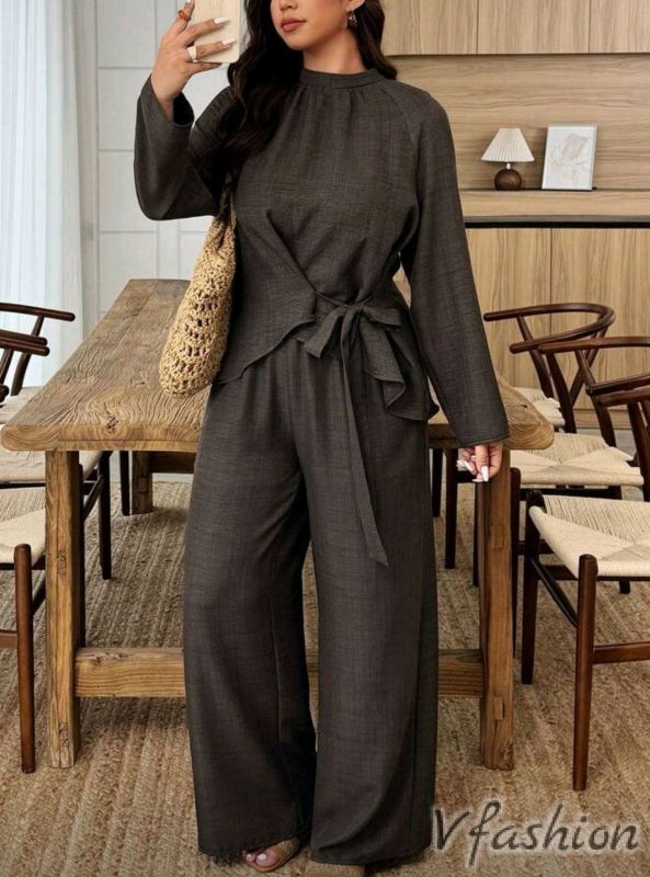 Красив, елегантен комплект от панталон и блуза с връзка.