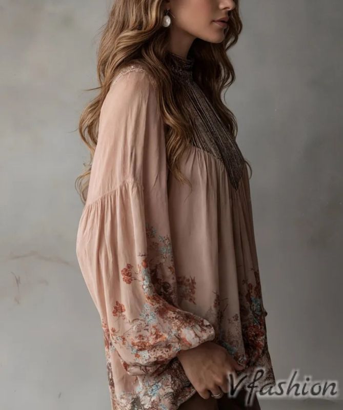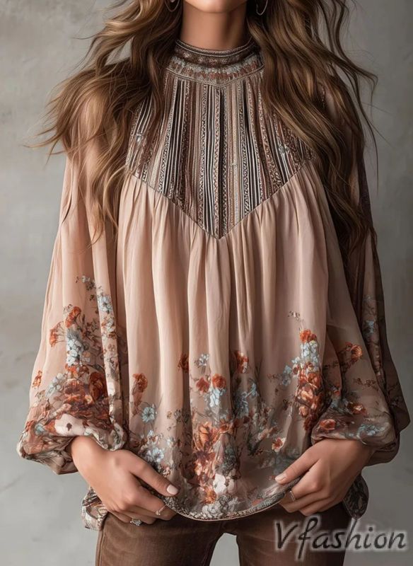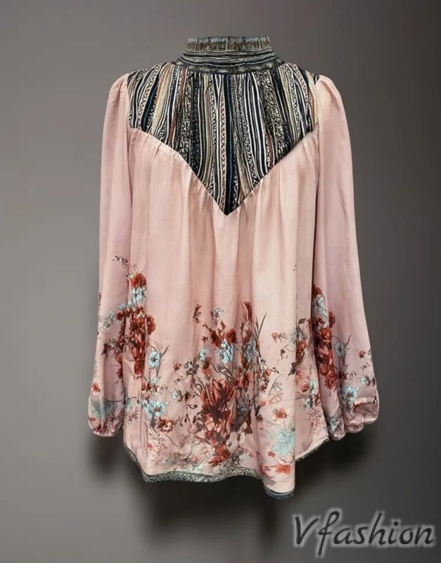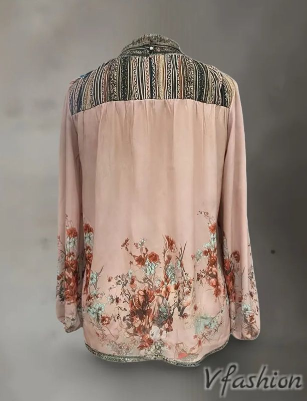 Елегантна блуза в топли цветове с принт цветя и акценти.