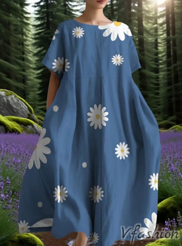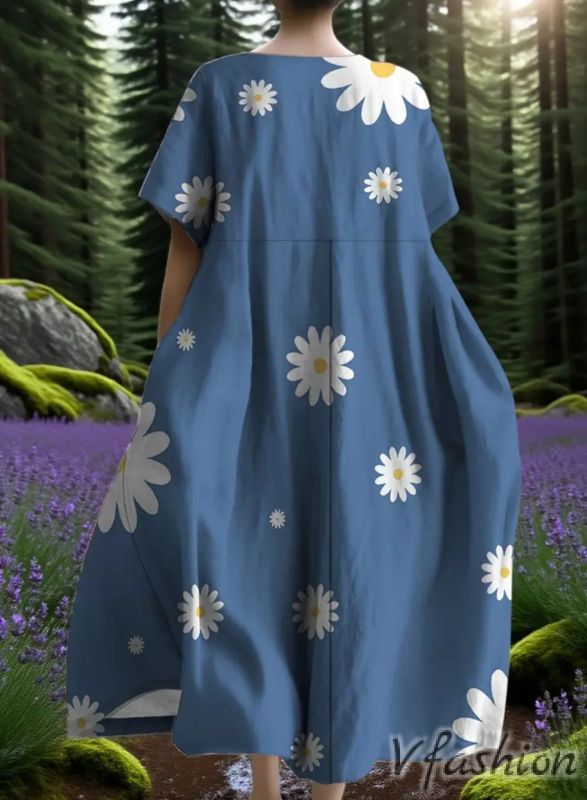 Много актуална, лятна рокля с принт маргаритки. Роклята има удобни, странични джобове