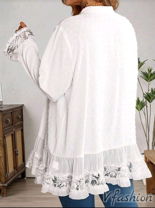 Разкроена риза с дантела - бяла