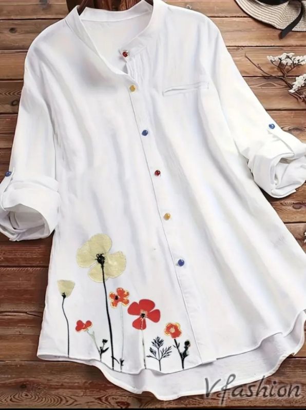 Много актуална риза с цветни копчета и принт цветя.