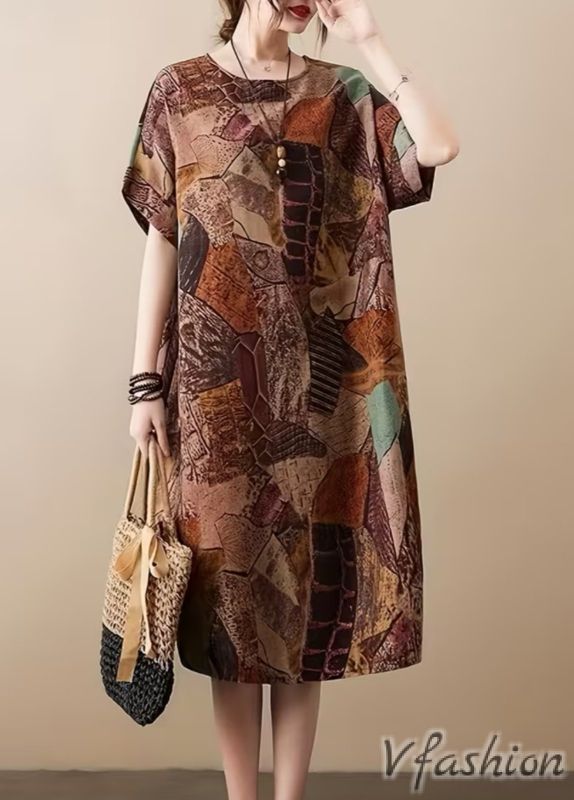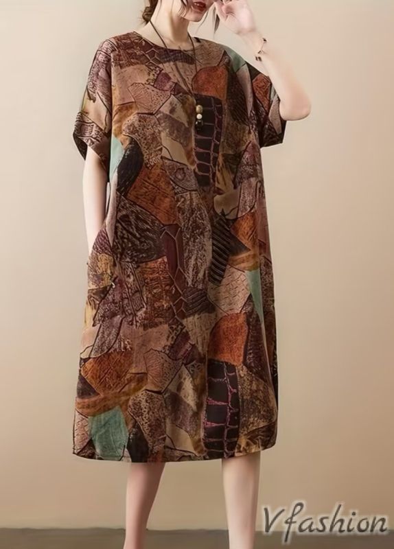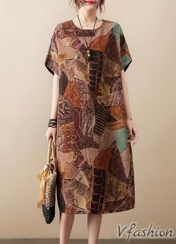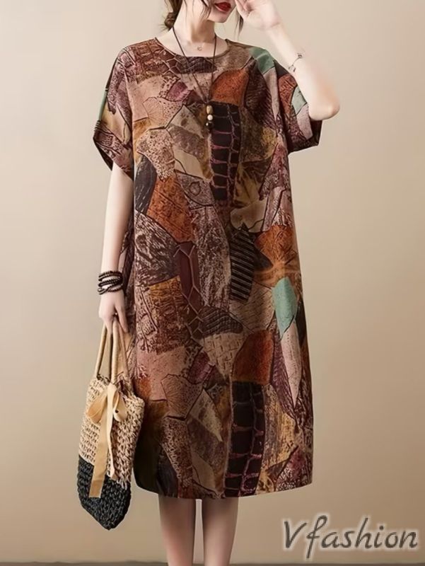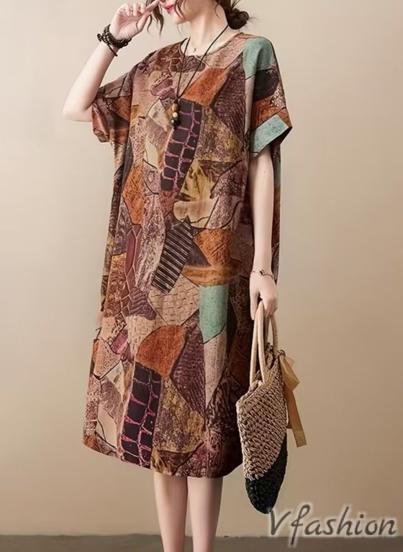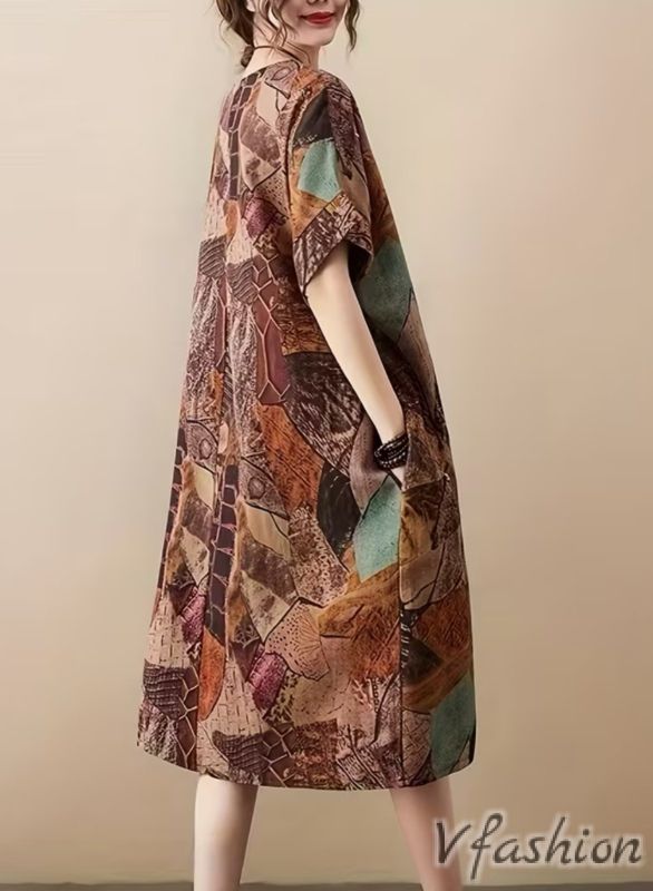 Ленена рокля с удобни странични джобови и принт в бохо стил.