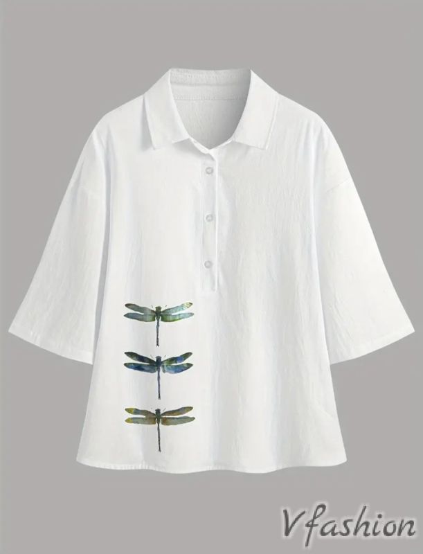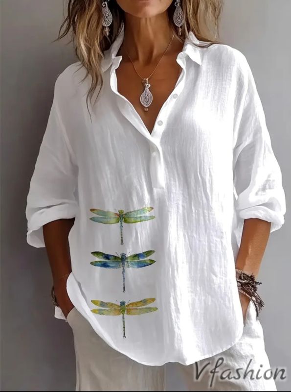 Много кокетна, памучна блуза с копчета и принт водни кончета.