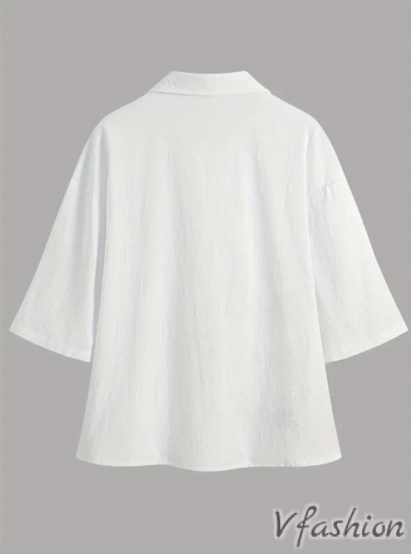 Блуза с копчета и принт - бяла