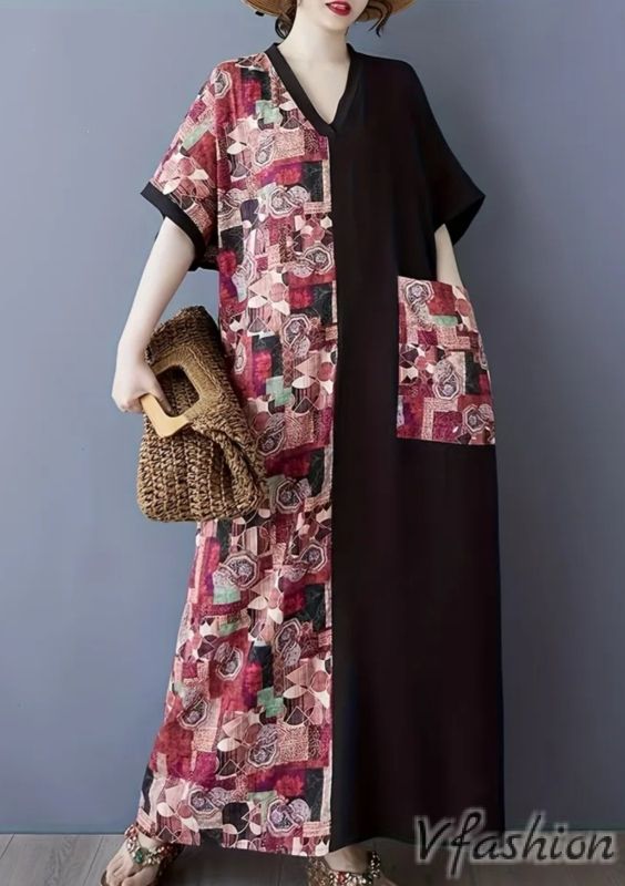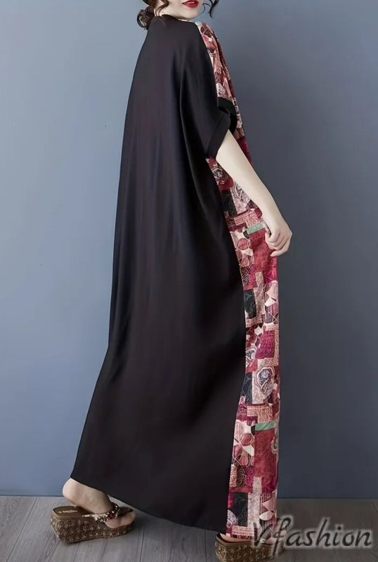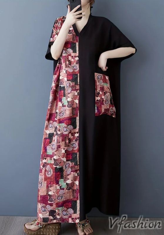 Дълга рокля с голям джоб и цветни мотиви в бохо стил.