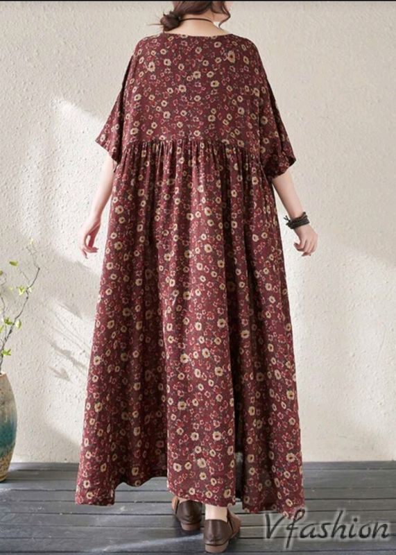 Разкроена рокля на цветчета - бордо